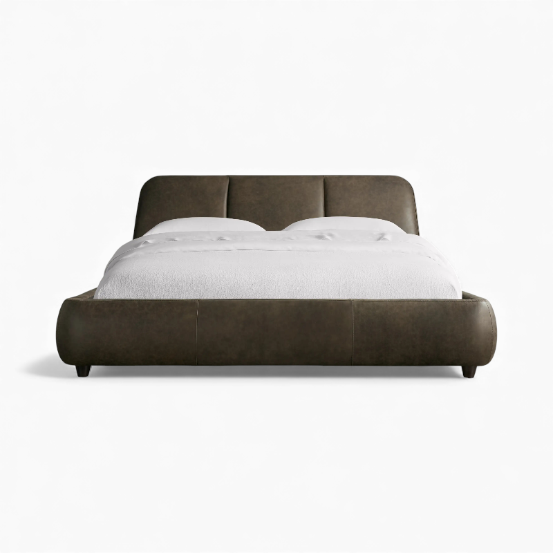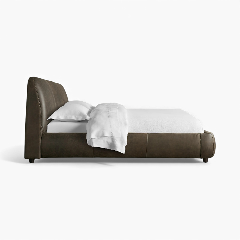 Frey Scandinavian Wood Bed with Upholstered Headboard