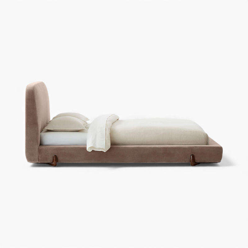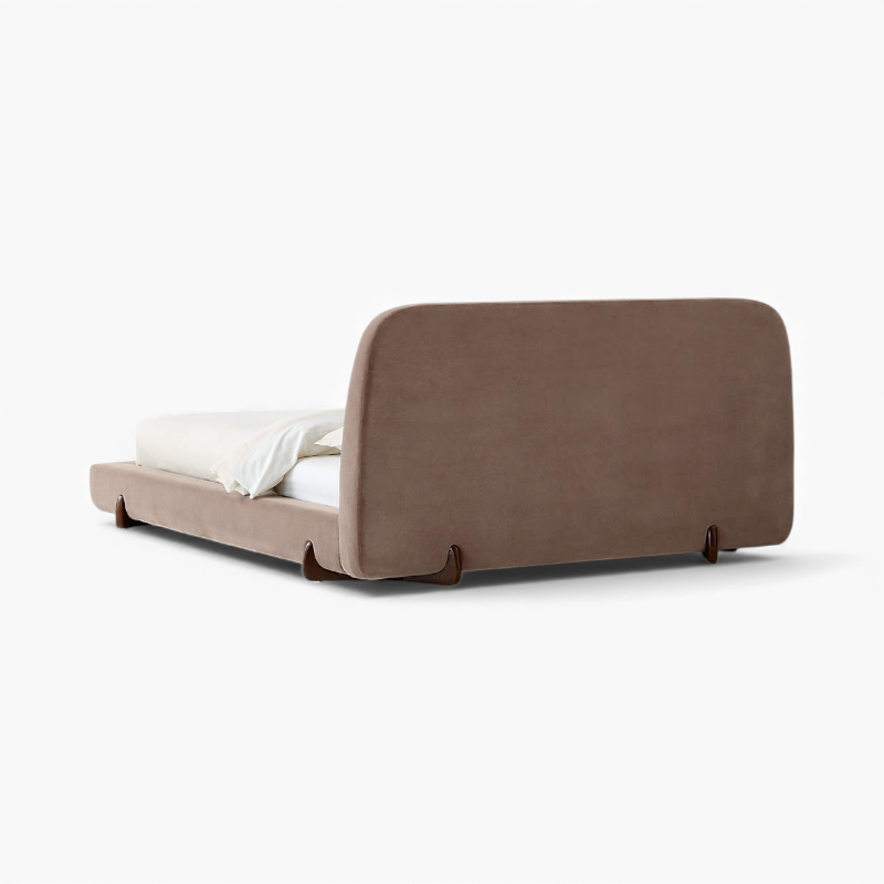 Frey Scandinavian Wood Bed with Upholstered Headboard