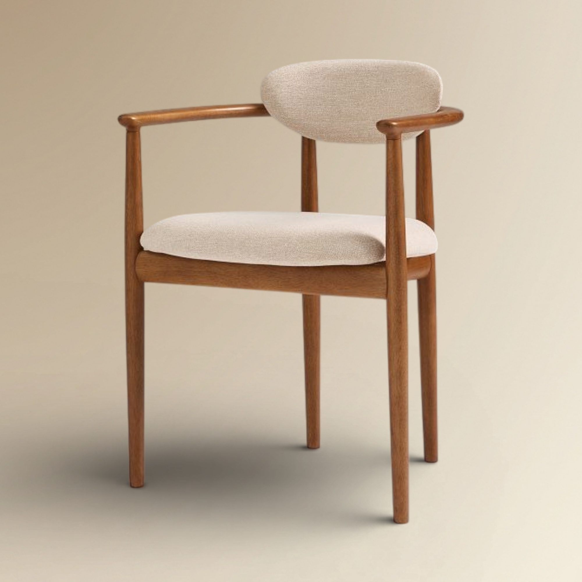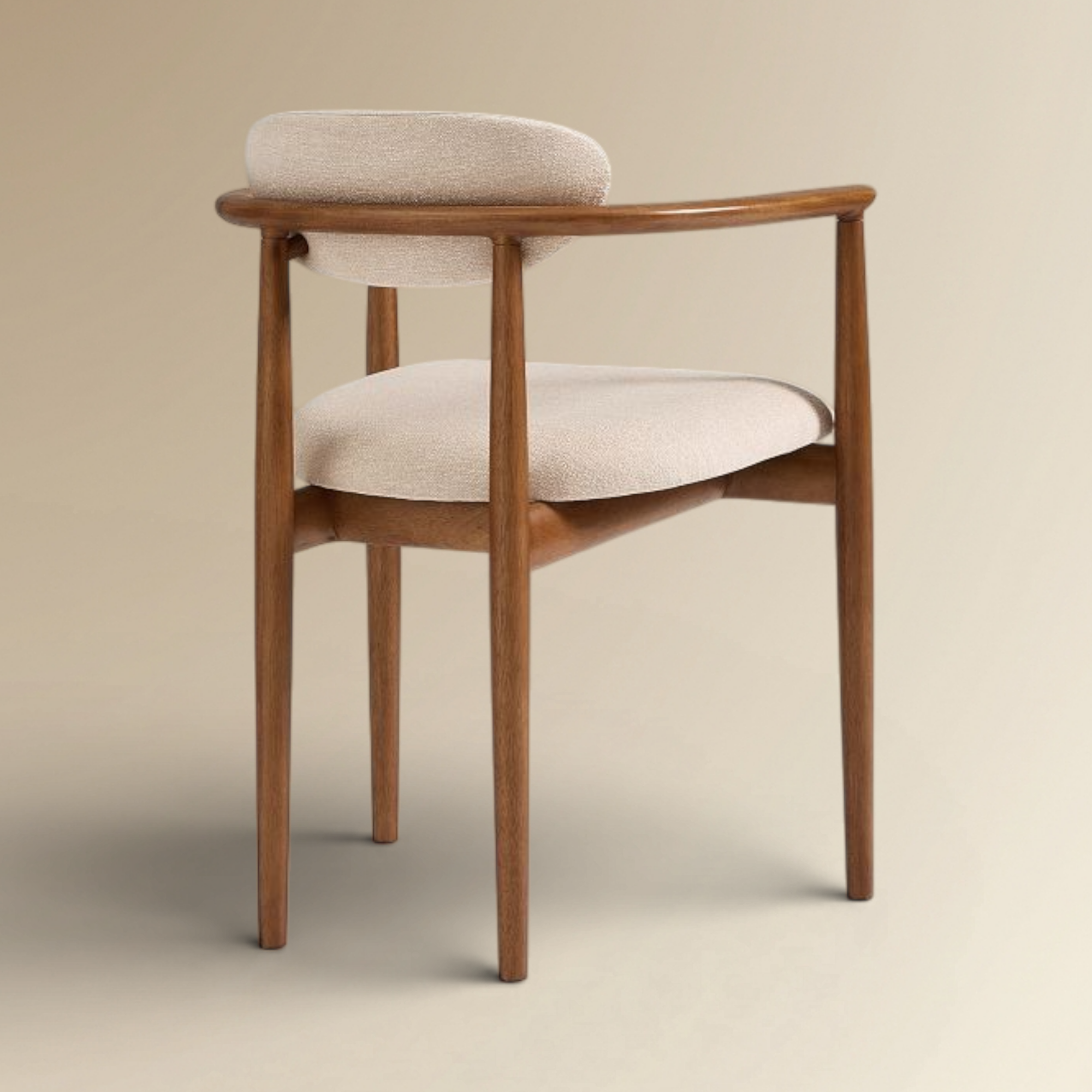 Elevate your interior with the Monty Mid-Century Modern Dining Chair, a masterpiece of sculptural design and organic warmth. This solid wood dining chair features a curved silhouette and tapered legs, offering a sophisticated aesthetic that complements any upscale dining space. Crafted with a soft, neutral upholstered seat and backrest, it balances contemporary dining furniture trends with timeless comfort and durability.