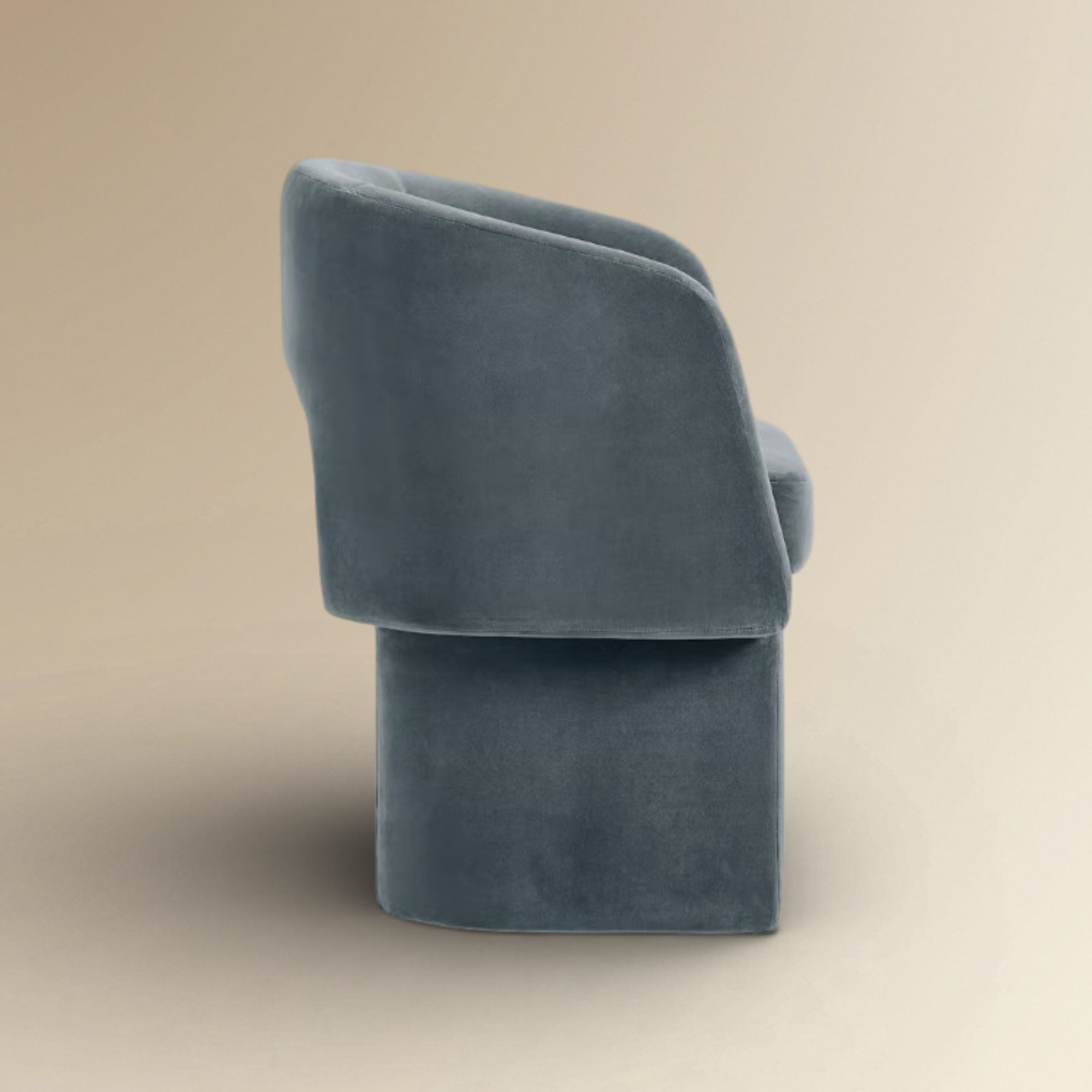Part of the Harsa Collections line of enduring furniture, the Viviane Dining Chair is a masterpiece of modern sculptural design. This fully upholstered piece is defined by its striking U-shaped back and a unique open arch detail at its center. Resting on two substantial, angled legs, its curvilinear, monolithic form creates a bold visual presence. Finished in a high-quality plush velvet, it is engineered to provide both a refined aesthetic and deep, enveloping comfort for any contemporary dining space.